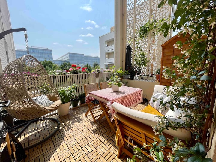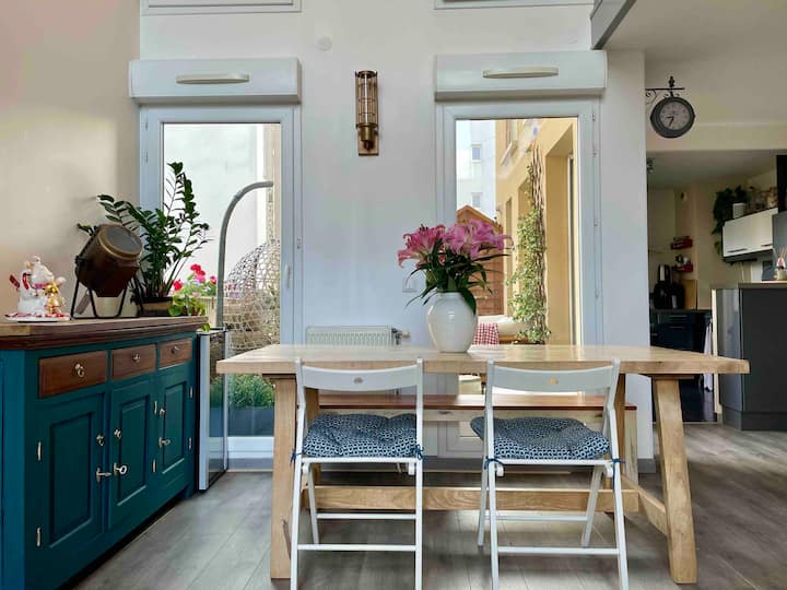 Nyumba mbili tulivu ya vyumba 3 vya kulala, metro, maegesho, mtaro