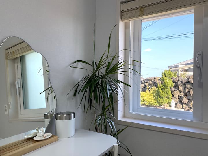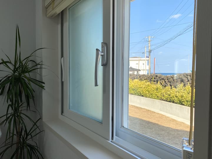 Hii ni Stay Ifle, iliyo mbele ya ufukwe huko Handong-ri, mashariki mwa Jeju. Kuwa na wakati mzuri na kufurahi na furaha katika bahari ya bluu Jeju na vijiji vya mashambani vya siri chini ya vilima vya Hallasan Mountain. Asante.