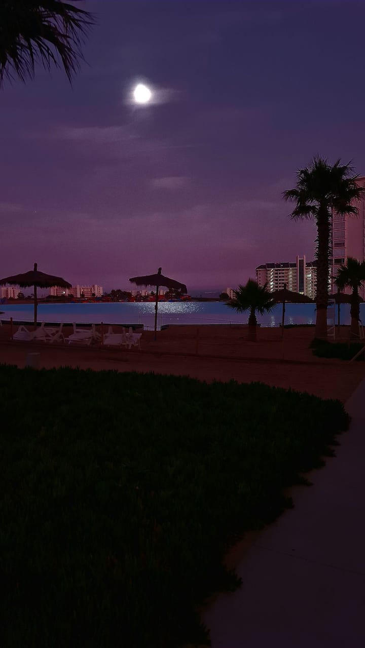 Depto. iliyojaa samani na mwonekano mzuri wa bahari