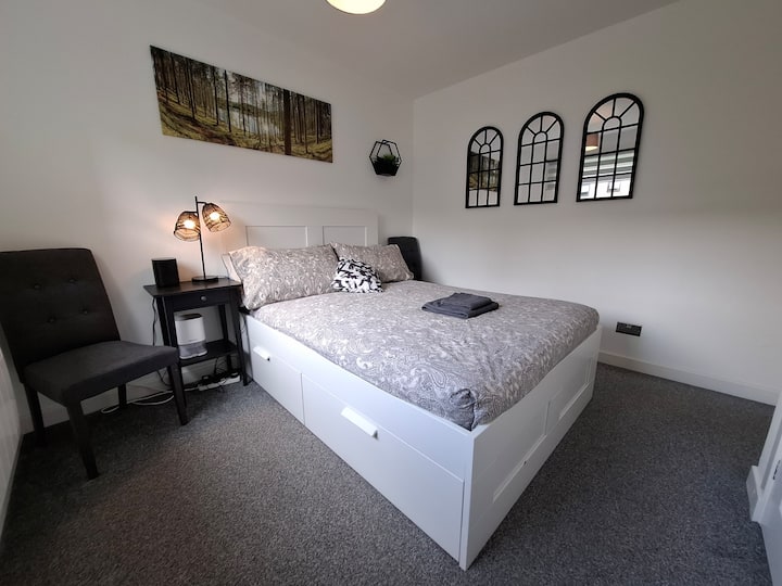 Fleti yetu ya vyumba viwili vya kulala iko katikati ya Paisley, na kuifanya iwe rahisi sana kwa ajili ya kuchunguza mji na vivutio vyake vingi. Iwe unataka kutembelea Abbey nzuri ya Paisley, furahia kutembea katika mojawapo ya mbuga za karibu, au uzame katika utamaduni mahiri wa eneo husika, kila kitu kiko umbali wa kutembea kutoka kwenye fleti yetu. Aidha, ikiwa unatafuta kujishughulisha zaidi, Glasgow inafikika kwa urahisi kupitia usafiri wa umma.