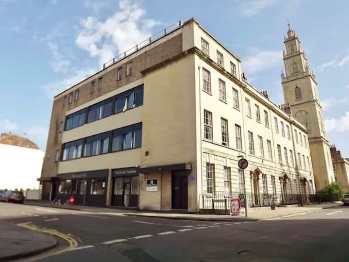 Portland Suites ni katikati iko ghorofa block na Free Parking. 3 mins kutembea kutoka Bristol ya eneo kuu ya ununuzi (Cabot Circus) na 7 dakika njia nyingine ya kula maarufu/ kunywa mitaani Gloucester Road na buzzing Stokes Croft eneo hilo.
