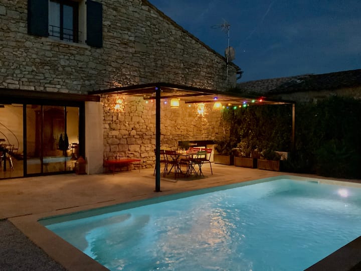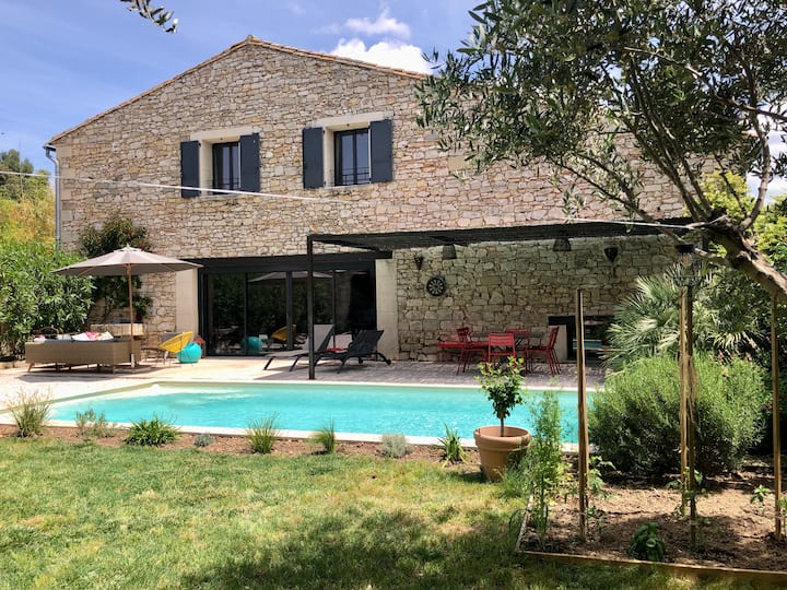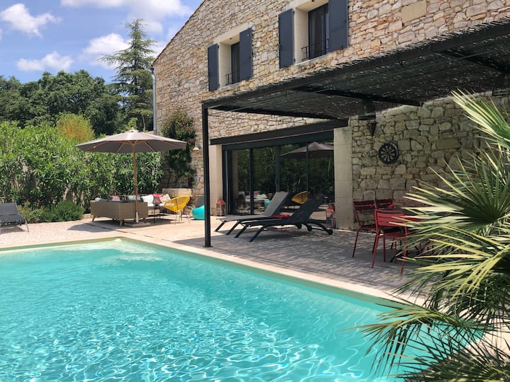 Iko katika Aspères, kijiji kidogo kilicho kati ya mizabibu, mizeituni na eneo la kusugua kilomita chache kutoka Sommières, nyumba yetu ya 190 m2 ni banda la zamani lililokarabatiwa kwa mtindo wa kisasa ambapo mawe, mbao na chuma huchanganyika.