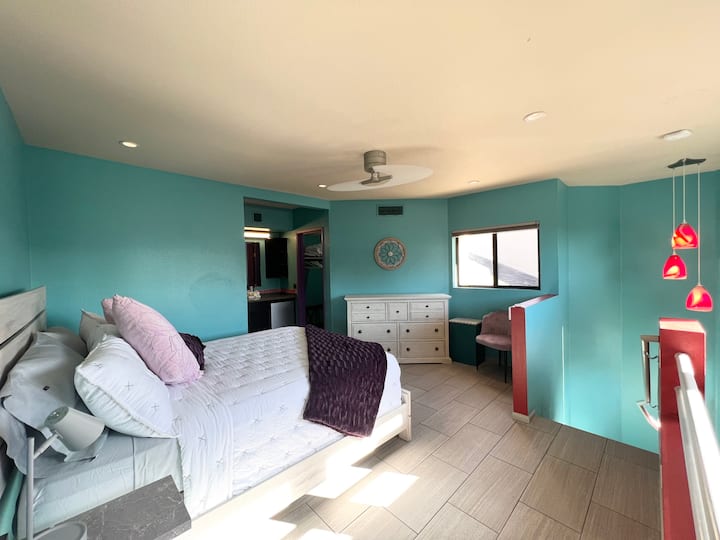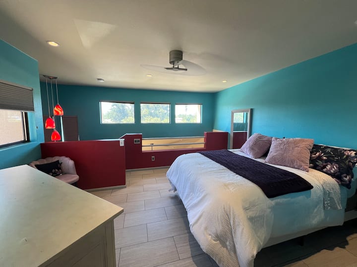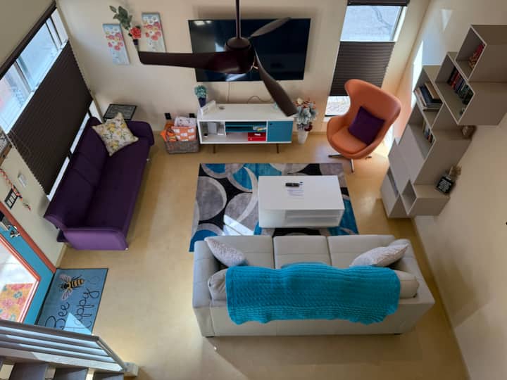 Tunakaribisha wageni katika nyumba yetu ya awali. Eneo letu la Callisto lilirekebishwa hivi karibuni na kujaa rangi ili kunifanya nifurahi na kuhamasishwa wakati wa kufanya kazi ukiwa nyumbani. Sasa tunatumaini wengine wanaweza kupumzika na kufurahia sehemu hiyo!