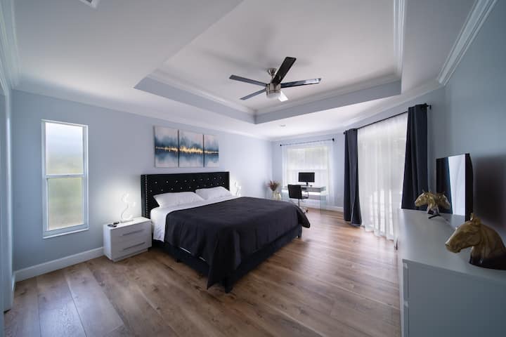 Nyumba ya kisasa yenye nafasi kubwa yenye bwawa la maji moto la kujitegemea