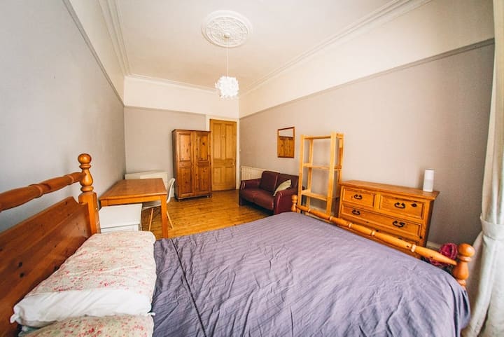 Chumba kikubwa cha watu wawili katika fleti nzuri ya mwisho wa magharibi