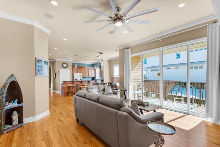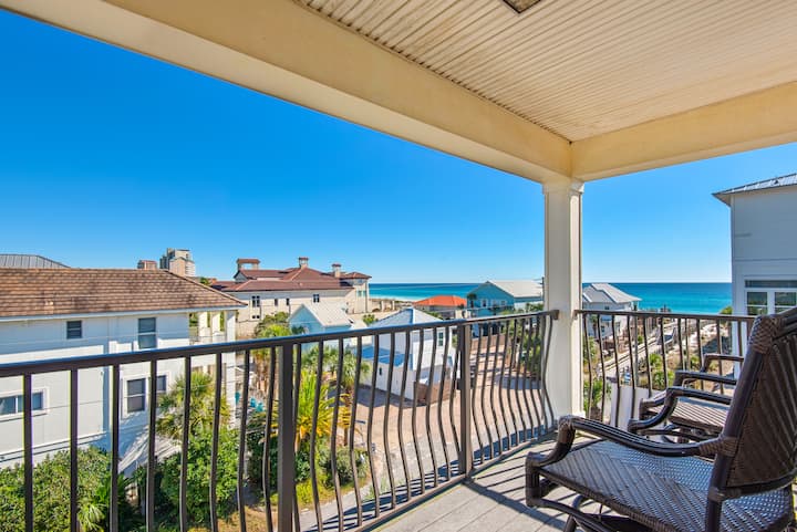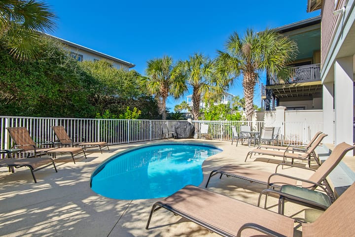 Je, uko tayari Kufurahia Siku? Nyumba hii ya vyumba 7 vya kulala iliyosasishwa kikamilifu, nyumba ya bafu 5.5 iko kwenye ngazi tu kuelekea kwenye mchanga mweupe wenye sukari wa Miramar Beach. Kujivunia zaidi ya 3800sf ya sehemu ya kuishi na mipangilio ya kulala kwa hadi wageni 24, hii ni nyumba bora kwa likizo ya familia au likizo na kundi kubwa la marafiki! Ukiwa na ua wa nyuma uliozungushiwa uzio ulioangaziwa na bwawa la kujitegemea, jiko la gesi, viti vya mapumziko na viti vingi, unaweza kuwa na wakati mgumu kuondoka kwenye nyumba! Hii ni nyumba ya ghorofa 3 iliyo na vyumba tofauti kwenye ghorofa 2 za kwanza. Ghorofa ya kwanza ina sebule/eneo la vyombo vya habari, jiko dogo, mashine ya kufulia/kukausha, vyumba vinne vya kulala hadi wageni 18, na mabafu matatu kamili. Vyumba viwili kati ya vinne vya kulala vina ufikiaji wa haraka wa bwawa na baraza! Ghorofa hii inaweza kutumika kama sehemu ya kufuli na ina mlango tofauti kwa ajili ya faragha ya mwisho. Ghorofa ya pili inafikiwa kwa lifti au ngazi. Hapa utapata eneo kuu la kuishi lenye dari za futi 10, karibu na jiko ambalo ni bora kwa milo mikubwa ya familia au kukusanyika tu kwa ajili ya vitafunio. Jiko ni ndoto ya mpishi, likiwa na kaunta za granite, vifaa vya chuma cha pua, jiko la gesi na vifaa mahususi vya kabati. Kuna vyumba vitatu vya kulala vyenye mabafu mawili na nusu pia kwenye ngazi hii, wakilala hadi wageni 6. Pia kuna chumba tofauti cha kufulia. Kuna roshani mbili kubwa ambapo unaweza kuona mandhari ya kuvutia ya Ghuba. Kwa ajili ya kupanda keki, panda ngazi moja zaidi hadi kwenye mnara wa ghorofa ya 3 unaoitwa "Captain's Lookout" ambapo utapata baa yenye unyevu na roshani, na kuifanya hii kuwa mahali pazuri pa kumaliza siku yako na kuchukua zaidi ya mandhari nzuri ya Ghuba. Njoo na marafiki na familia yako na uone kwa nini Seas the Day itakuwa desturi yako ya likizo ya ufukweni ya milele!