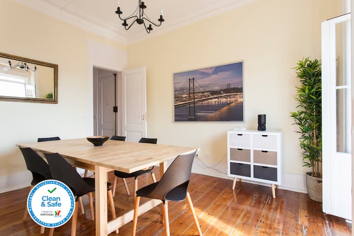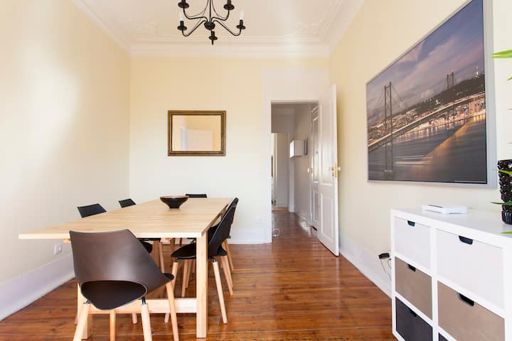 Furahia faragha ya jumla ya fleti yako mwenyewe, yenye ufikiaji wa kipekee na kamili wakati wote wa ukaaji wako. Fleti hii ni bora kwa familia au makundi yanayotafuta kuchunguza Lisbon, ikitoa mchanganyiko nadra wa eneo kuu na nafasi ya kutosha ya kutoshea makundi makubwa, yote yako umbali wa kutembea kutoka vivutio muhimu.