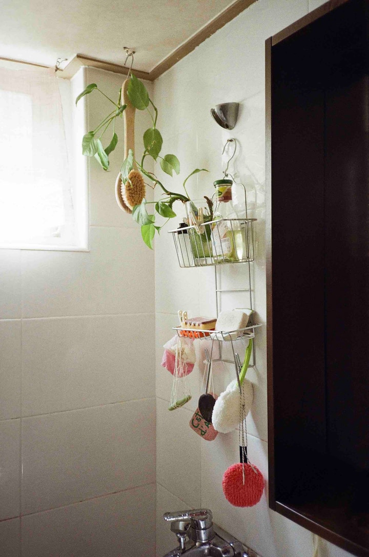 ninatumia baa ya shampoo na dawa ya meno imara kwa ajili ya kuondoa plastiki. Jisikie huru kuzitumia. ikiwa umesahau kuleta mswaki, usinunue moja ya plastiki na unijulishe. Nina moja ya mianzi kwa ajili yako. tafadhali tumia taulo kwenye rafu na uweke chafu kwenye begi kwenye mashine ya kuosha. Kikausha nywele kiko chini ya kioo karibu na mlango wa chumba cha kuoga. tafadhali uirudishe baada ya kuitumia.