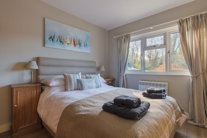 Nyumba ya shambani yenye mwonekano wa ajabu, nyumba ya boti na moorings