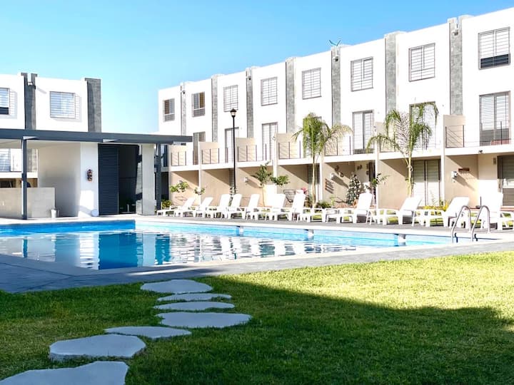 NYUMBA YA MBELE YA BWAWA yenye vifaa vya hali ya juu kwa ajili ya kupumzika