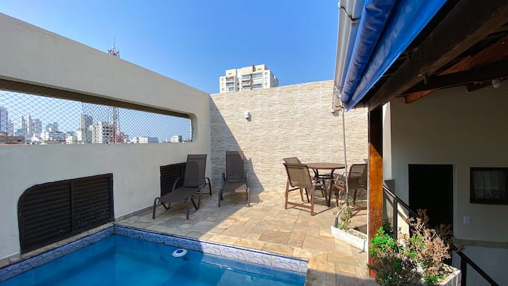 Penthouse ya vyumba 3 vya kulala na barbecue na bwawa