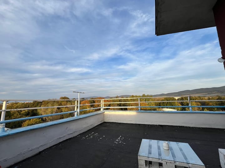 Fleti ya juu ya paa iliyo na mwonekano wa bustani ya jiji