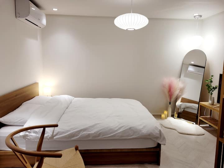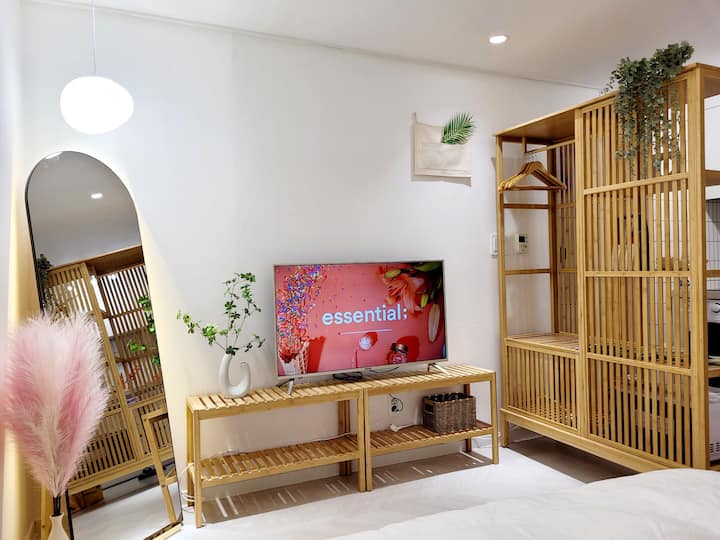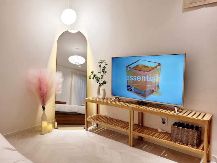 # Kituo cha Hongdae Sangsu dakika 1 # Smart TV inchi 55 # Maegesho ya bila malipo