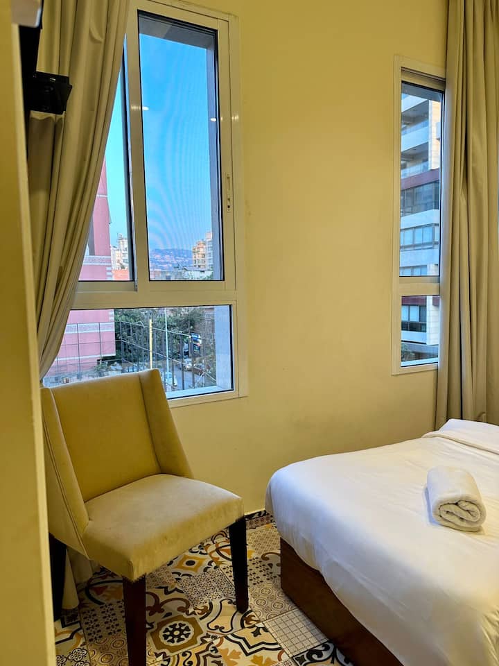 Lifti mbili katika jengo, mgahawa(Zaia) juu ya paa, mwonekano mzuri wa Beirut.