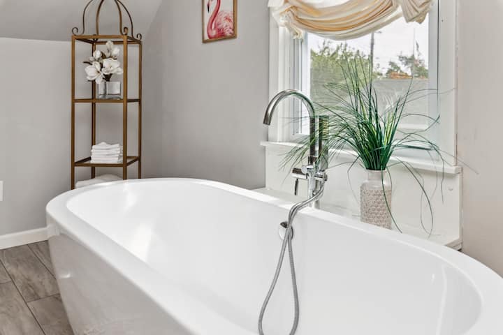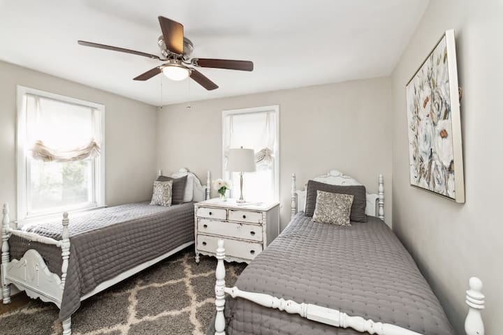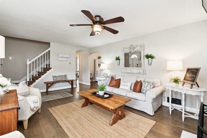 Chumba cha kulala 3 cha kupendeza, nyumba 2 ya bafu na mahali pa kuotea moto.