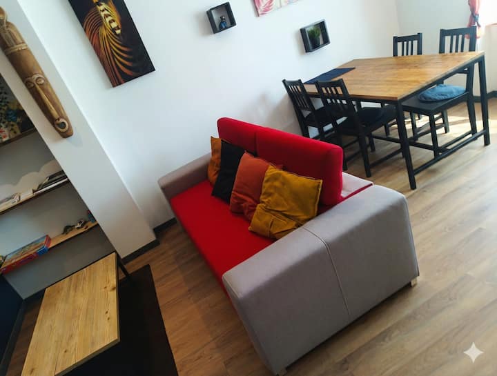 Fleti ya T2 na utulivu mzuri na maegesho ya kujitegemea