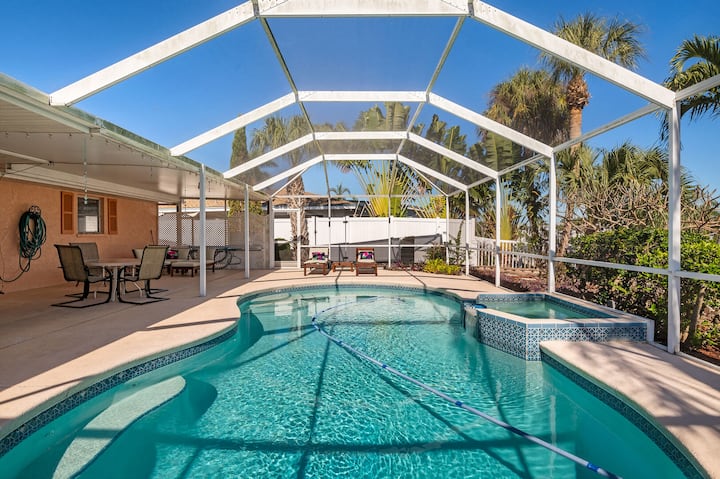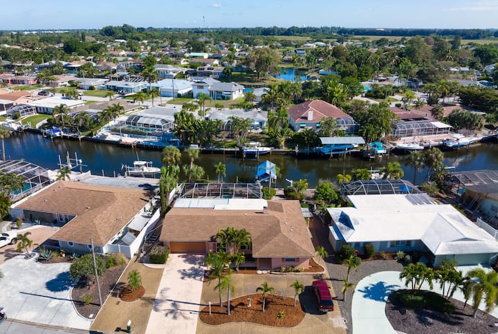 Nyumba ya mbele ya mfereji/ya bwawa linalopashwa joto - Dakika chache hadi Ufukweni
