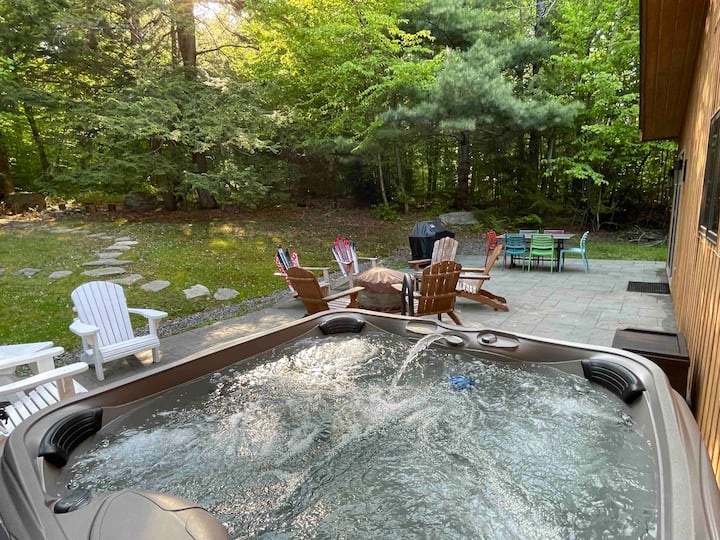 Karibu kwenye likizo yako ya kifahari ya msituni huko Stratton, Vermont! Nyumba hii ya kupendeza ya likizo imejengwa kwenye ekari 4 za kibinafsi za msitu mzuri, ikitoa kujitenga na urahisi. Nyumba hii iko dakika chache tu kutoka Stratton Mountain Resort, Mount Snow Resort na Green Mountain National Forest, hutoa msingi mzuri kwa ajili ya jasura za mwaka mzima. Nyumba hii iliyoundwa ili kuamsha dhana ya Denmark ya hygge, ambayo inajumuisha joto, utulivu na ustawi, nyumba hii inatoa beseni la maji moto la kujitegemea, sauna, na hata nyumba ya kwenye mti kwa ajili ya likizo bora.