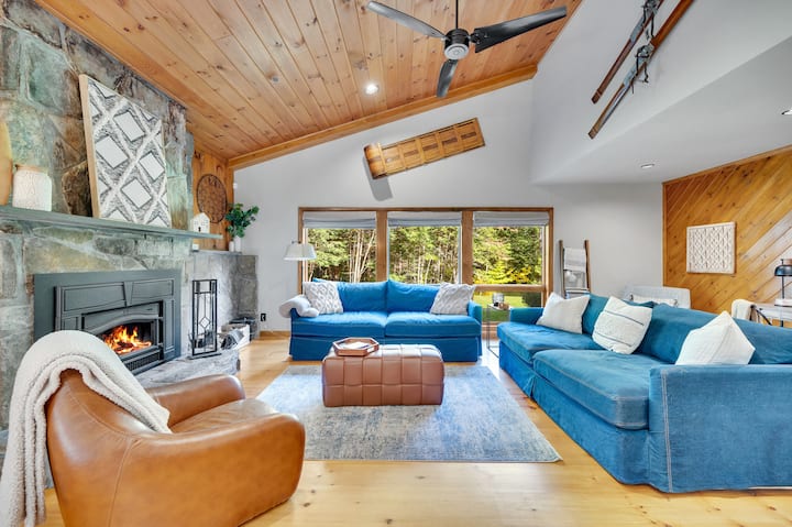 Kimbilia kwenye NYUMBA YA HYGGE, likizo yako ya starehe na ya kisasa ya mlima inakusubiri. Njoo upumzike na uweke kumbukumbu na familia na marafiki katika mapumziko ya kisasa ya kifu katika ekari 4 za miti huko Stratton. Pumzika kwenye BESHENI LA MAJI MOTO na SAUNA au pumzika kwenye NYUMBA YA KWENYE MITI ya kijijini kwa ajili ya likizo bora ya mlima. Dakika chache tu kutoka Mlima Stratton na Mlima Snow, kito hiki cha usanifu ni mchanganyiko kamili wa upweke na jasura. Ina intaneti ya kasi ya juu, jiko la kupendeza na meko ya mawe yenye starehe.