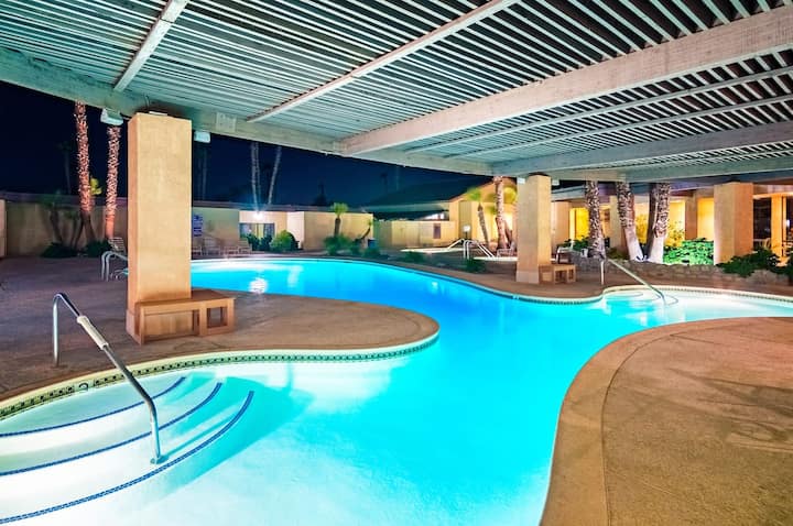 Nyumba hii ya vyumba viwili vya kulala, bafu mbili kamili haiko tu katika eneo la kipekee karibu na mabwawa lakini ina ofisi iliyo na vifaa na mandhari nzuri, sitaha na baraza ya nyuma. Utafurahia ukaaji wako kwa ajili ya nyumba kubwa na sehemu ya nje iliyo na mandhari ya milima.