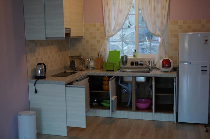 Habari. Hii ni pensheni mpya ya sol iliyopo dakika 3 kutoka Jinbu IC. Sisi ni biashara iliyosajiliwa katika biashara rasmi ya malazi na tumekuwa tukiendesha pensheni kwa miaka 12. Iko karibu na katikati, lakini ni tulivu kwa sababu iko kati ya milima na mto, na hutoa sehemu nzuri.