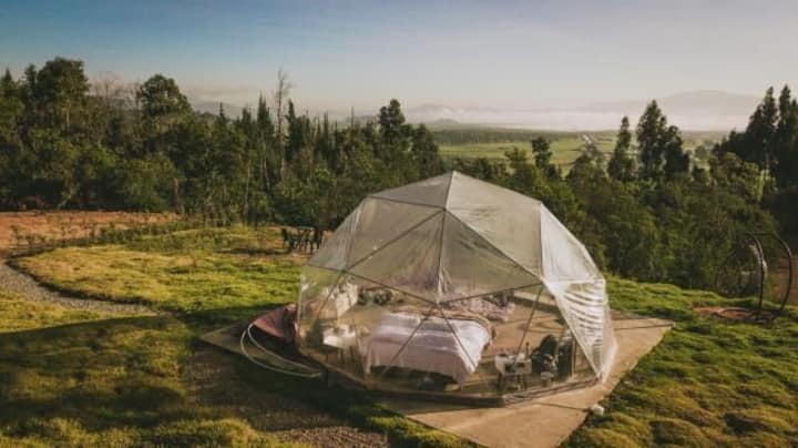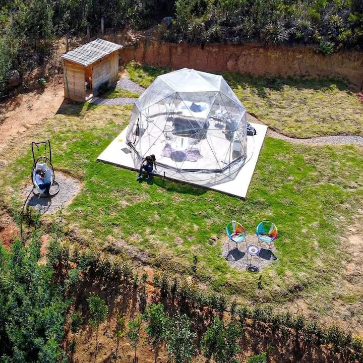 Dome ya Geodesic inayoangalia Fúquene Lagoon