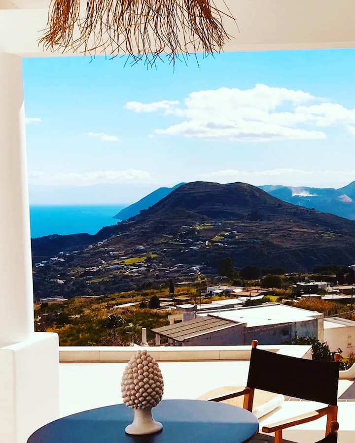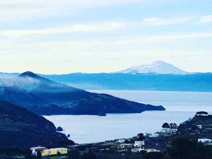 Fleti iliyo na bwawa dogo na mwonekano wa Vulcano