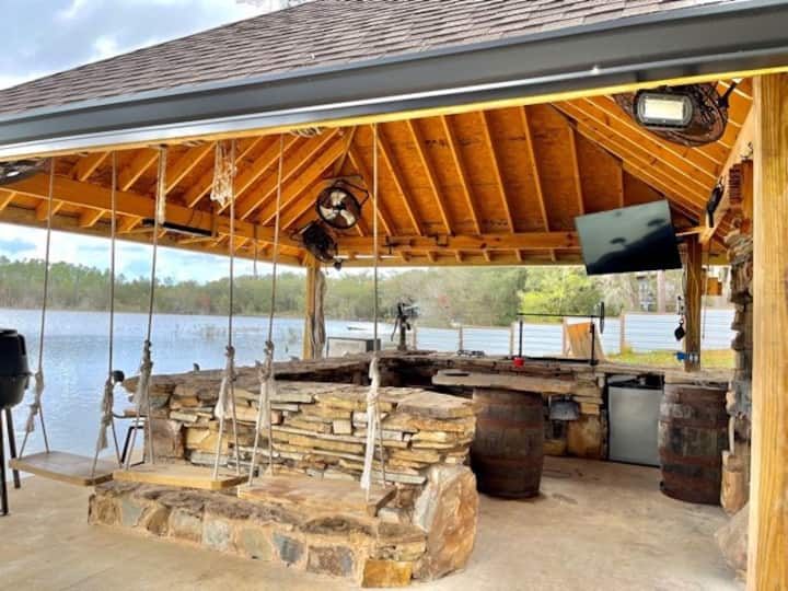 Nyumba ya mbao kwenye Ufukwe wa Kujitegemea pamoja na Baa ya Tiki na Cabana