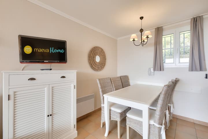 The Residence Les Restanques du Golfe de Saint-Tropez- maeva Homeoverlooks the whole Mediterranean bay providing a unique setting. Utashawishiwa na eneo hili lenye ukubwa wa hekta 25 huku bustani yake iliyofungwa ikifuatiliwa. Unaweza kutembelea kijiji cha Provencal cha Grimaud na kutembea katika jiji la kihistoria la Saint-Tropez.