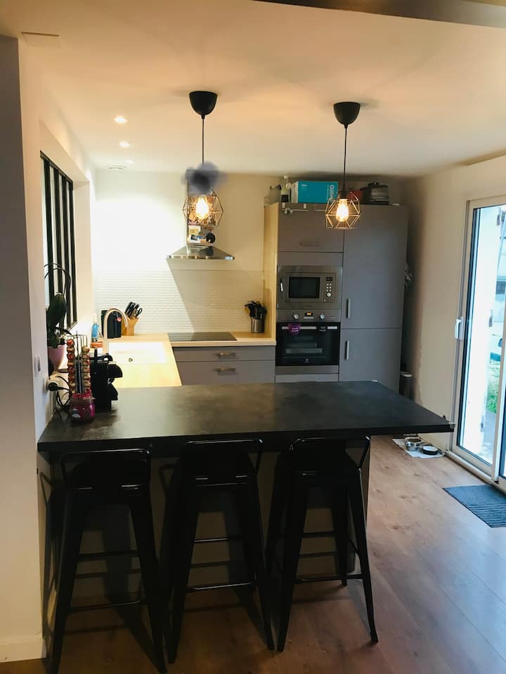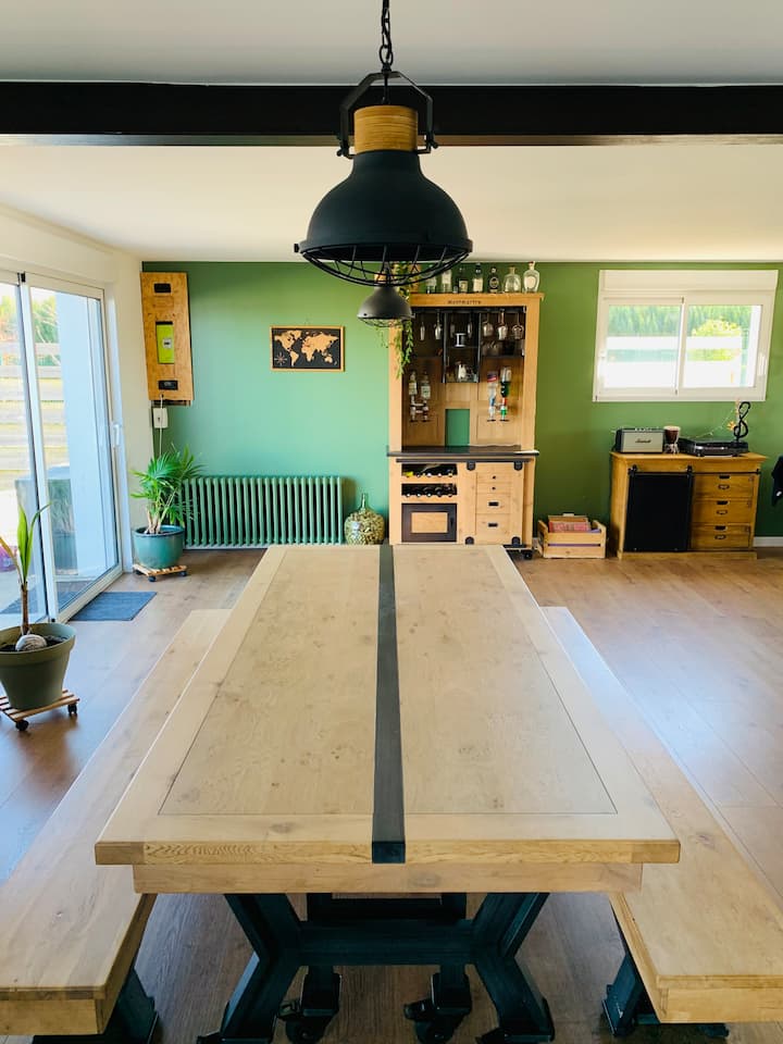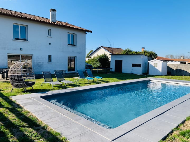 Nyumba ya familia yenye joto la bwawa 15 min. Bordeaux