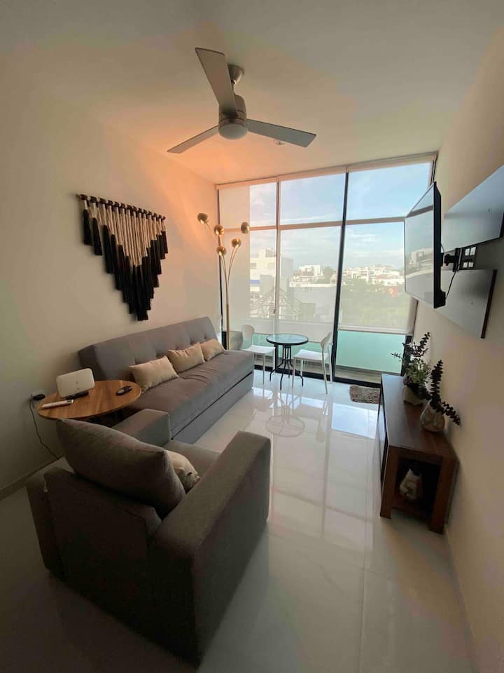 Kondo vyumba viwili vya kulala vipya na karibu na ufukwe