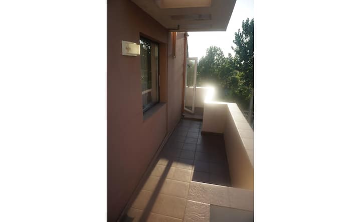 Studio iliyo na mtaro mkubwa katika jengo lenye bwawa la kuogelea