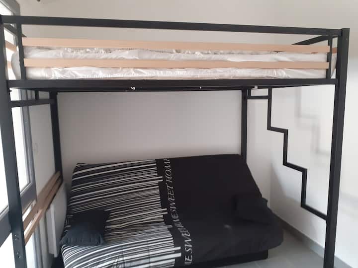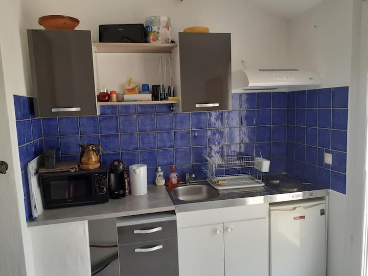 Studio na mtaro katika Provence, bwawa la kuogelea umbali wa mita 100.