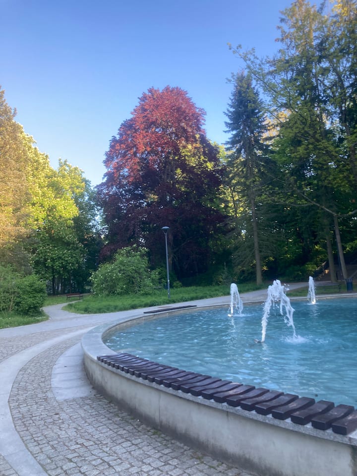 Habari, mimi na mke wangu tunakupa fleti yetu yenye starehe, ambayo tulinunua mapema mwaka huu. Tunatumaini kwamba utavutiwa na hali yako pia. Utapata michoro mingi iliyochorwa na sisi na marafiki zetu. Kwa hivyo unaweza kuona jiji kwa macho yetu, tutakuambia mahali pa kula na nini cha kuona. Ikiwa unasafiri na wanyama vipenzi - nzuri, kuna bustani nzuri kwa ajili ya matembezi jirani. Tunatumaini utakuwa na ukaaji mzuri:)