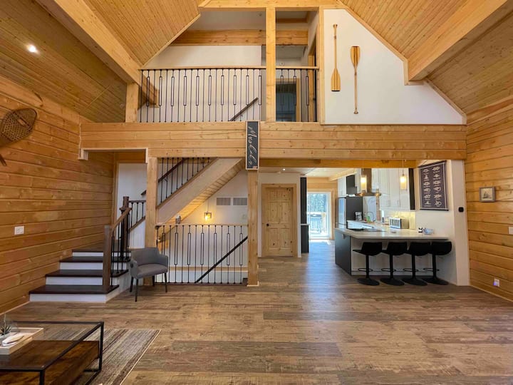 Karibu kwenye Treetop Retreat - nyumba ya mbao iliyohamasishwa na uzuri wa Muskoka! Iko kwenye eneo binafsi la ekari 7.5. Pumzika katika mapumziko ya msituni ya kujitegemea yenye sauna inayowaka kuni, mabeseni mawili ya spa, na njia ya amani ya kuelekea mtoni, yenye ufikiaji wa Ziwa Rosseau. Ina vifaa kamili na imebuniwa kwa uangalifu na vistawishi vya kisasa kama vile jiko la mpishi katika mpangilio wa magogo ya kijijini. Mtumbwi, mtumbwi au kiatu cha theluji kwenye mto wenye amani wa Kivuli. Hulala wageni 8 kwa starehe, kukiwa na machaguo mbalimbali ya mipangilio ya kulala.