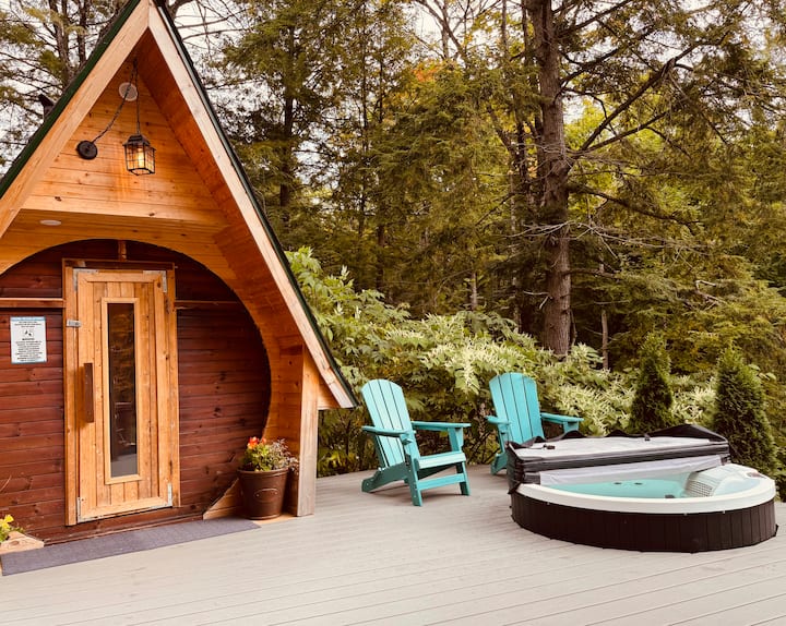 Wageni wataweza kufikia spa yetu ya kujitegemea ya mwaka mzima ambayo inajumuisha sauna ya kuni ya Kifini, mabeseni 2 ya spa, na bafu la maji baridi ambalo hutoa uzoefu kamili wa Nordic wa joto tofauti la maji (26-40C) na takribani (10-14C). Pia unaweza kufikia njia fupi za kujitegemea kwenye nyumba, kayaki, mtumbwi, jaketi za maisha za watu wazima na viatu vya theluji.