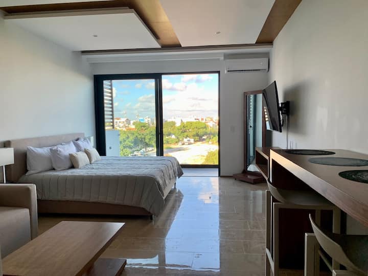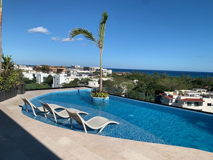 Studio nzuri yenye bwawa la kwenye dari na mwonekano wa bahari