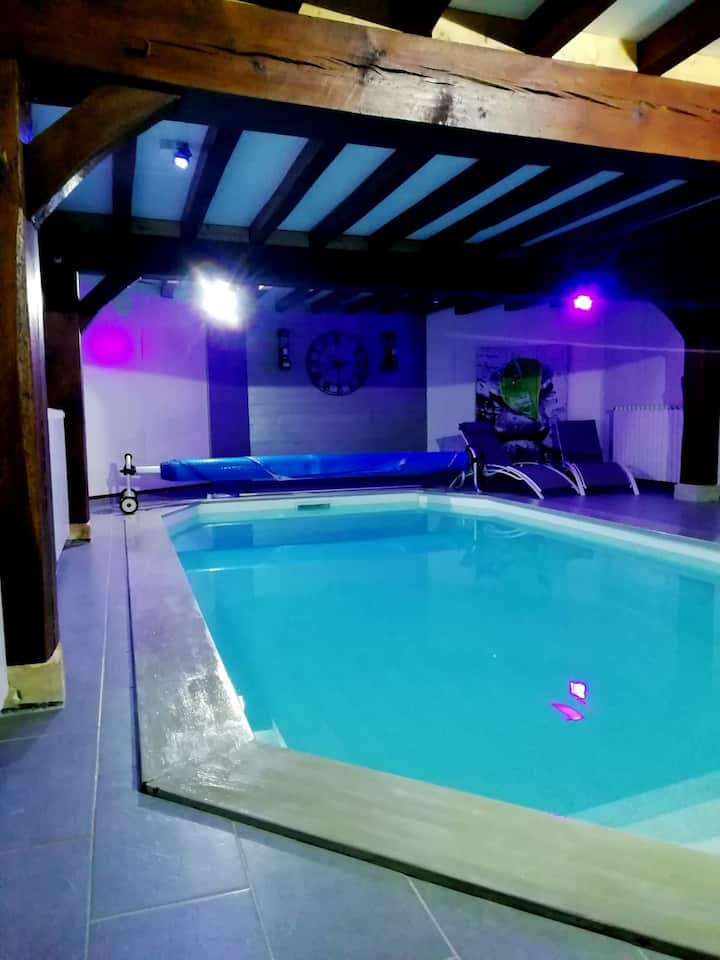 Bwawa la ndani la kujitegemea - inapatikana mwaka mzima, inafunguliwa saa mahususi, kifuniko cha bwawa, lililopashwa joto, midoli ya bwawa