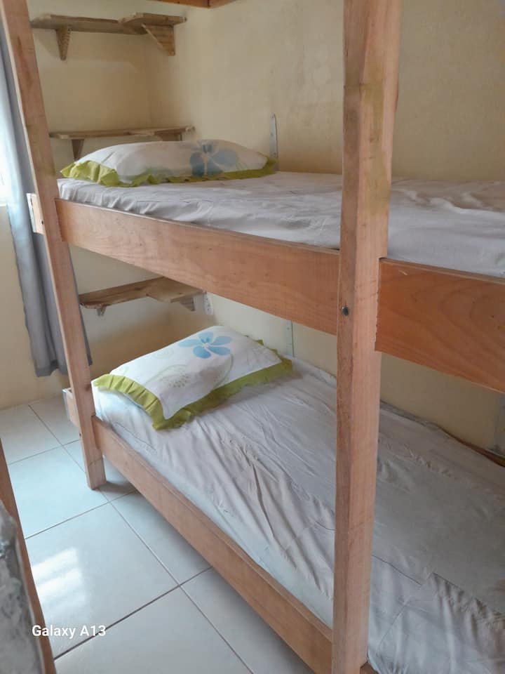 Chumba kikuu kilicho na kitanda cha watu wawili na kitanda cha ghorofa kilicho na kitanda cha usaidizi, chumba cha kulala cha pili kilicho na treliches 2 (kiyoyozi cha hiari, na malipo ya ziada)