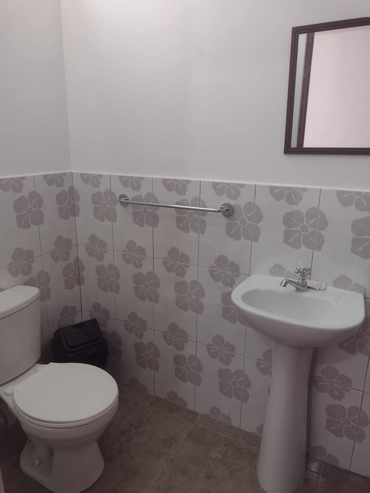 Sehemu hii ina bafu ambalo limeunganishwa na chumba chako.