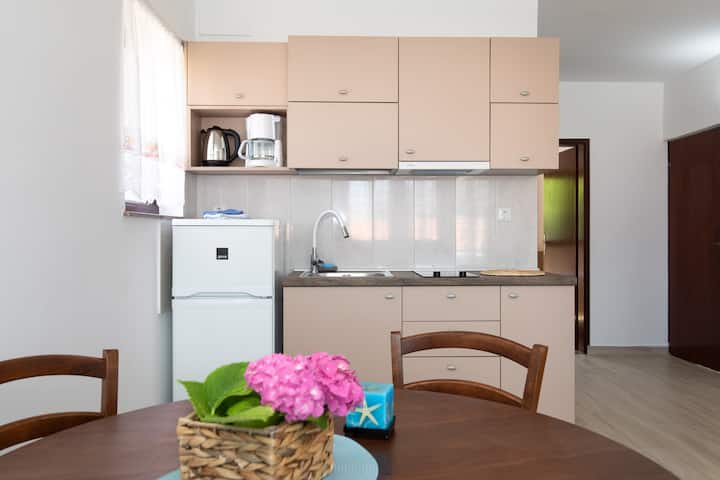 Fleti angavu na yenye hewa safi, mita 60 kutoka ufukweni