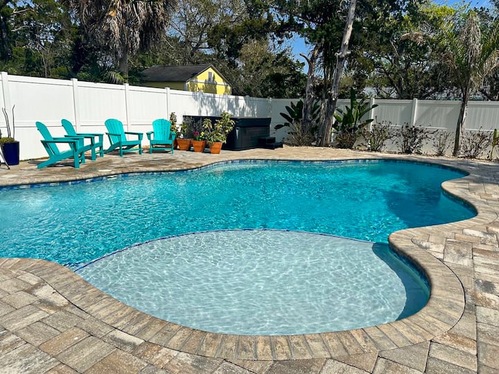 Bwawa la Kuogelea lenye Joto/Beseni la Kuogelea lenye Joto maili 1 hadi katikati ya jiji/ufukweni