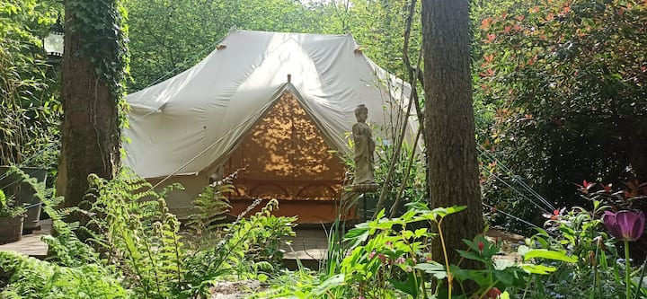 Karibu! Mimi na mshirika wangu tungependa kukukaribisha kwenye hema letu la miti lenye jiko la kuni na matandiko ya kifahari. Hema la miti liko katika eneo lililotengwa la uzuri wa asili.. Tulihamia hapa miaka 4 iliyopita na tunapanga kukaa kwani hatungependa kuishi katika mazingira ya asili yenye amani zaidi, iliyojaa wanyamapori na roho nzuri ya jumuiya! Sisi wawili tunafanya kazi katika eneo husika lakini pia tunafurahia uhuru wa matembezi ya msituni ya mlango, tukipiga makasia kwenye mto kwenye mawimbi makubwa, au kutumia jioni kwenye baa yetu ya eneo husika ambayo hutoa chakula kizuri cha eneo husika na ukaribisho wa kirafiki! Tunaweza kubadilika na watu wa vitendo kwa hivyo tafadhali wasiliana nasi ikiwa kuna maombi yoyote ambayo hayajaorodheshwa.