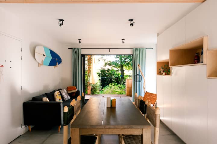 Kuchagua Ufaransa kama msingi wangu mpya wa nyumbani haukuwa wa ubongo. Kwa upande mmoja nchi hii inatoa fukwe nyingi za kuteleza mawimbini zinazofikika. Kwa upande mwingine nchi yangu ya nyumbani Ubelgiji na familia yangu inayoishi huko sio mbali sana pia. Nilipata paradiso yangu ndogo huko Labenne. Hiki ni kijiji tulivu katikati ya eneo la utalii. Mbali na maeneo yote ya kuteleza mawimbini, eneo hili pia hutoa matukio tofauti ya vyakula. Sio tu kwamba kuna miji mingi mizuri ya kutembelea, eneo hilo pia hutoa shughuli tofauti katika mazingira ya kijani. Nimekuwa na bahati sana ya kugeuza shauku yangu kuwa taaluma yangu. Sasa hatimaye ninaweza kuwapa wageni wangu nyumba ya mbali na ya nyumbani.
