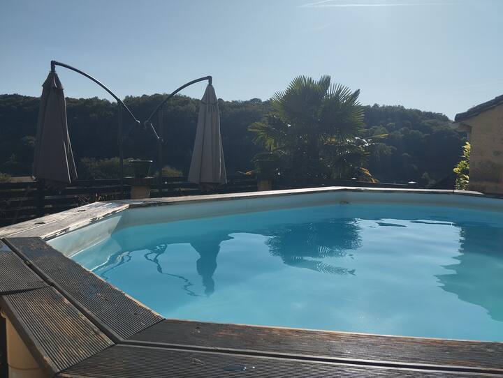 Mtazamo wa kawaida wa Perigordian, bwawa la kuogelea na bonde