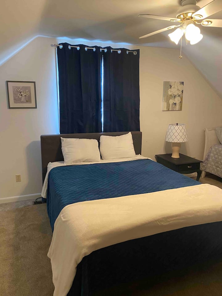 Nyumba ya vyumba 2 vya kulala yenye kupendeza, shimo la moto na karibu na ufukwe