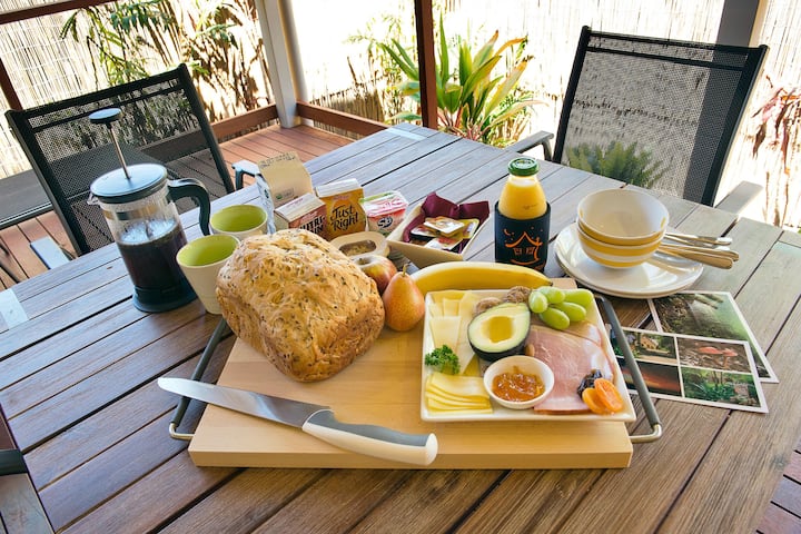 Witches Falls Cottages iko mbali na Mlima Tamborine katika Gold Coast Hinterland, umbali wa chini ya saa moja kwa gari kutoka Brisbane ikitoa malazi ya kimapenzi kwa wanandoa. Ikiwa kati ya bustani zenye harufu nzuri na mnara wa Rose Gums, kila moja ya nyumba zetu za shambani ina eneo la mawe linaloweza kuhamishwa, veranda ya pua ya ng 'ombe na ina sakafu ya mbao iliyong' arishwa, mahali pa kuotea moto (msimu), spa mbili, bustani tofauti ya bafu na ua wa kibinafsi iliyo na BBQ. Vivutio vingi vya milima ni matembezi mafupi tu kutoka kwenye nyumba za shambani ikiwa ni pamoja na Lookout ya Lookout kwenye ukingo wa escarpment na mtazamo wa ajabu na eneo kamili la kushuhudia moja ya jua letu zuri. Wakati mlango unaofuata ni Sehemu ya Witches Falls ya Hifadhi ya Taifa ya Mlima Tamborine – Hifadhi ya Taifa ya zamani zaidi katika Queensland na ya tatu ya zamani zaidi duniani. Vivutio vingine vya karibu ni pamoja na maporomoko ya maji, minyoo inayong 'aa na viwanda vya mvinyo ambavyo vinatumikia Mvinyo mzuri wa Rims na chakula kitamu zaidi. Malazi yetu yote yanajumuisha kiamsha kinywa cha kifahari kilicho na chaguo la BBQ au Gourmet (zote ni pamoja na mkate wetu uliotengenezwa nyumbani) unaopelekwa kwenye nyumba yako ya shambani saa 2 asubuhi.
