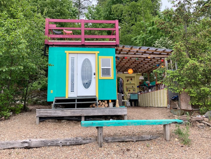 Mwaka 2012, nilinunua nyumba hii nzuri na ya porini kwenye ukingo wa ziwa la Kootenay. Kwa miaka 11 iliyopita nimekuwa nikiitengeneza kwa vitu vya sanaa na mbunifu ili kukaribisha wageni, kuburudika na/au kufundisha baadhi ya mambo ya kushangaza ambayo nimejifunza wakati wa maisha yangu.