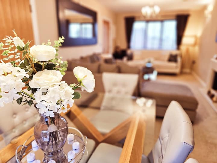 Wakati wa likizo katika The Chase unaweza kutarajia kupinda katika sebule kubwa, lakini yenye starehe na eneo la kulia. Sofa kubwa ya kona inafanya iwe eneo bora la kupumzika na kupumzika na familia na marafiki, kucheza michezo ya ubao au kupata binge ya Netflix. Nyumba hii pia ni sehemu ndogo ya hadithi yetu — ni nyumba ya kwanza kabisa iliyohamasisha kile ambacho baadaye kilikuja kuwa XL Escapes, iliyochaguliwa kwa ajili ya starehe yake, faragha na utulivu wa nadra wa akili ambao sehemu yake salama ya nje hutoa. Hapo ndipo safari yetu ya kukaribisha wageni ilipoanzia.