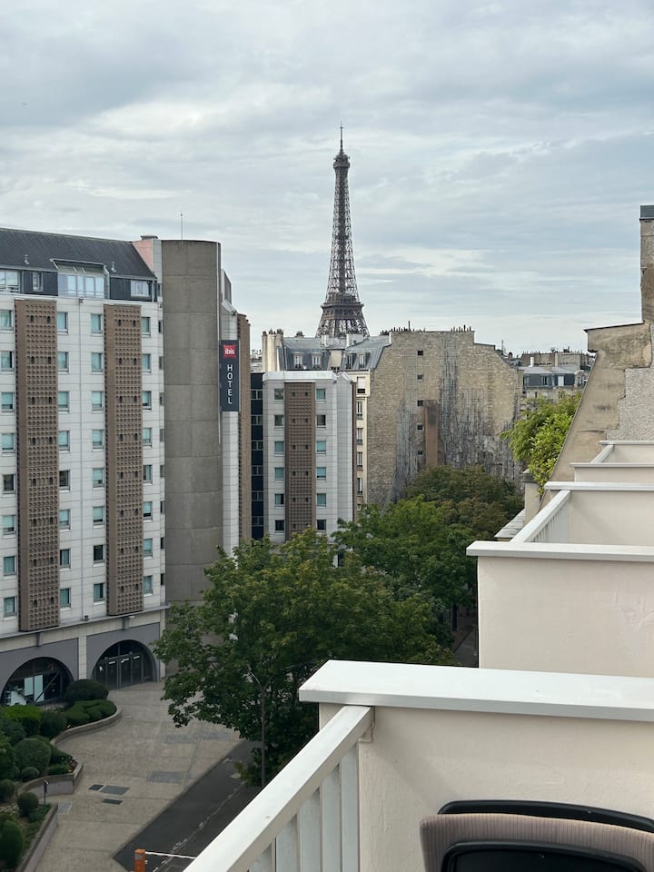 Fleti 1 ya kitanda yenye mandhari ya Mnara wa Eiffel